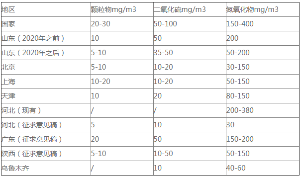 我國已出臺的部分地區燃氣鍋爐排放標準匯總